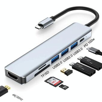 7 σε 1 HDMI+SD/TF+USB2.0x2+USB3.0+PD σε σταθμό σύνδεσης HUB τύπου C