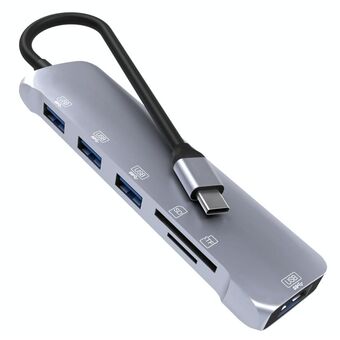 NK-3049H 6 σε 1 Προσαρμογέας USB-C / Type-C σε υποδοχή κάρτας TF / SD + USB 3.0 + 3 USB 2.0 Female (Space Grey)