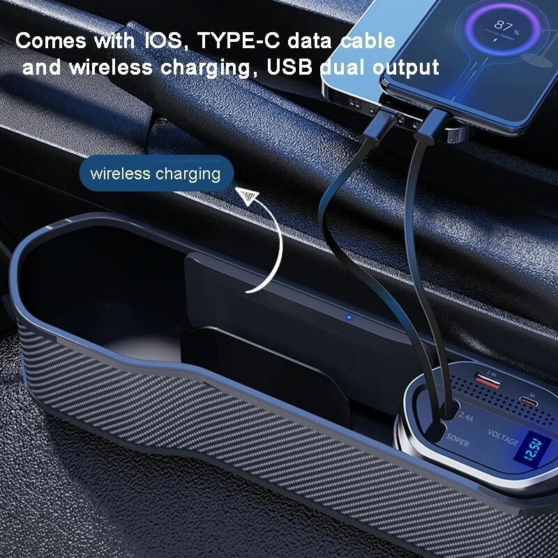 Οργανωτής κουτιού αποθήκευσης για τα καθίσματα του οχήματος Πλευρική τσέπη στην κονσόλα του μπροστινού καθίσματος ,Spec: Συνήθης καλώδιο ασύρματης φόρτισης