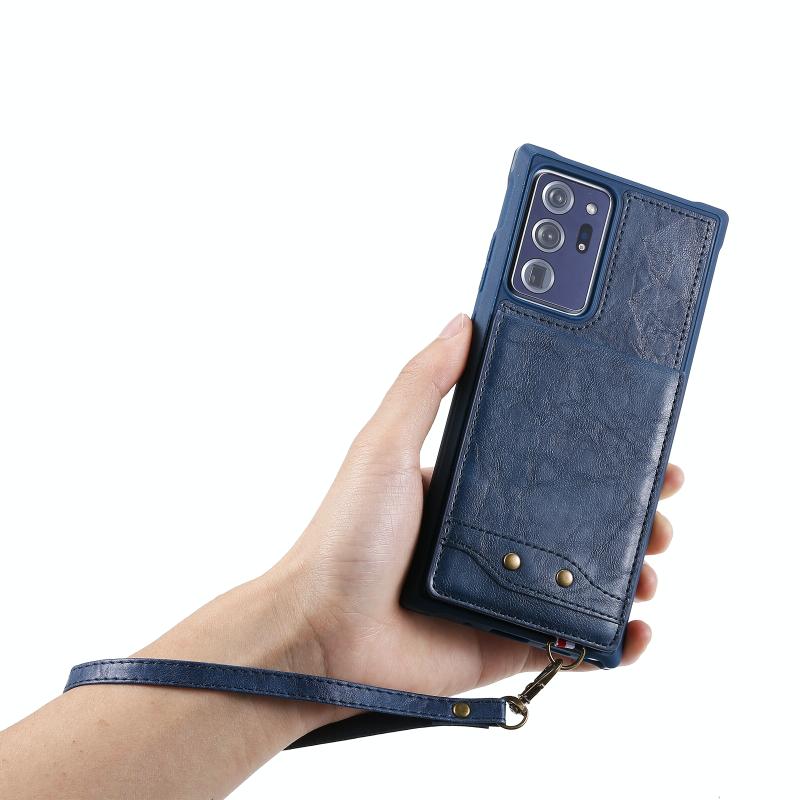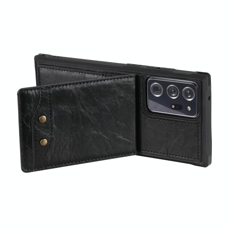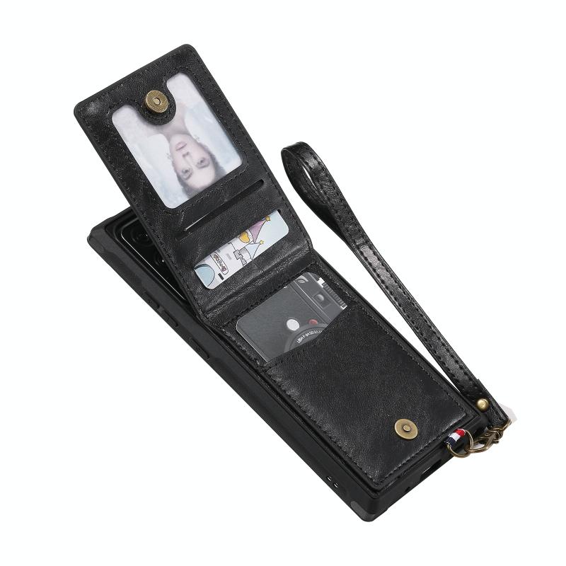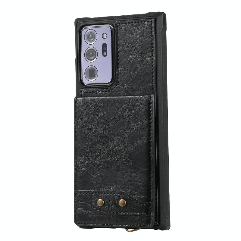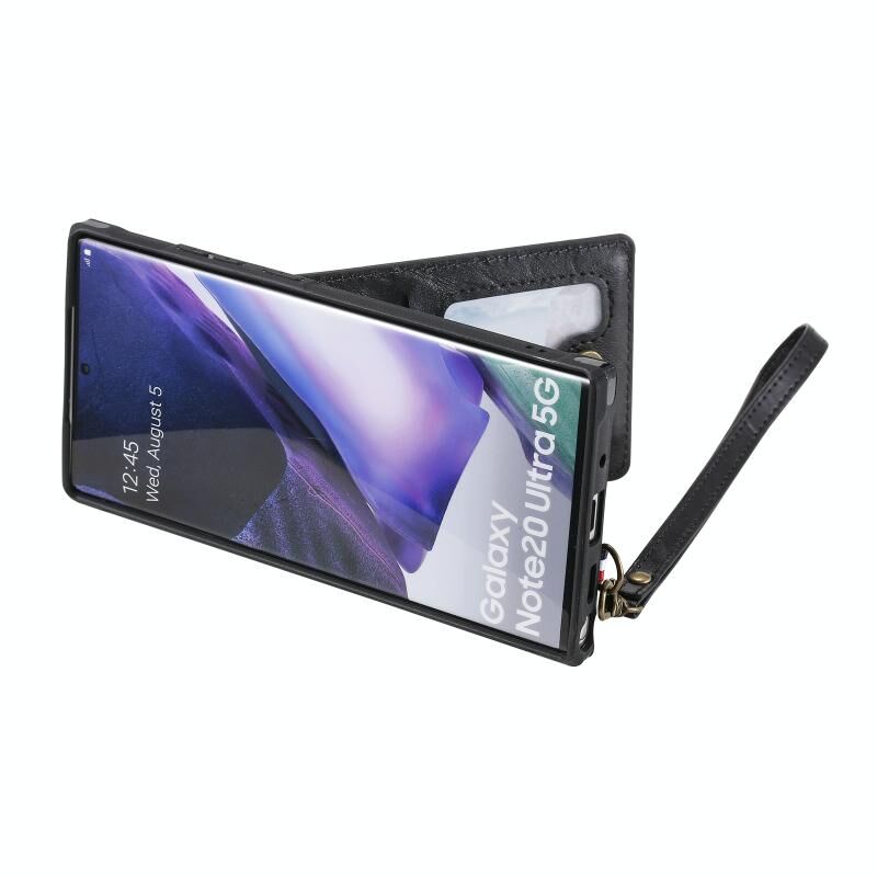 Θήκη πορτοφολιού με κάθετη αναδίπλωση, αντικραδασμική, προστατευτική θήκη με βάση στήριξης, θήκες καρτών, κορδόνι & κορνίζες φωτογραφιών για Samsung Galaxy Note20 Ultra (Μαύρο)