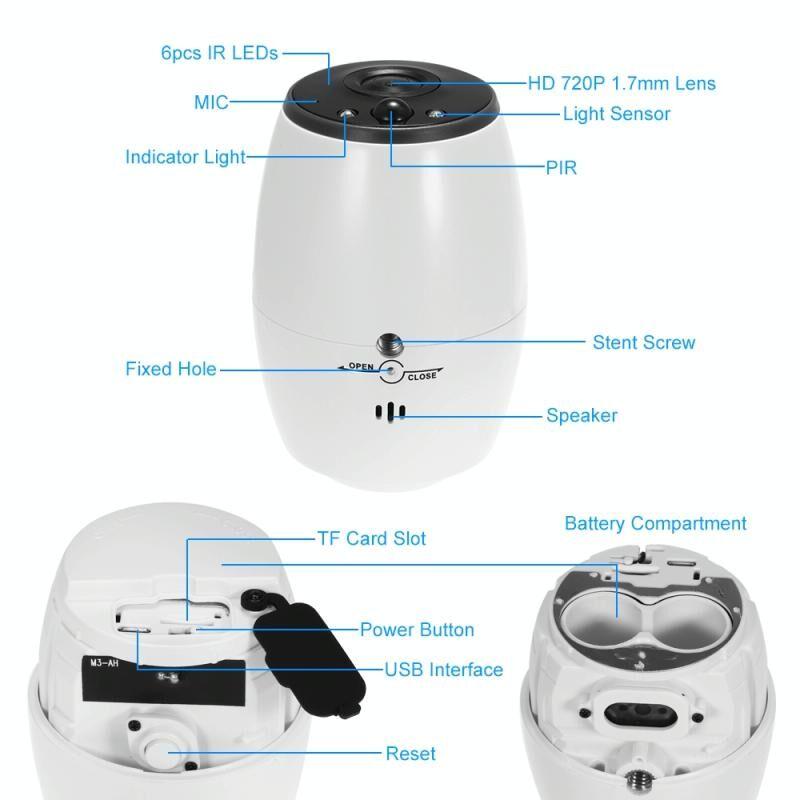 4. Υποστήριξη ανίχνευσης PIR & αμφίδρομου ήχου, κάρτα TF (32GB Max) (δεν περιλαμβάνεται), αδιάβροχη IP54.