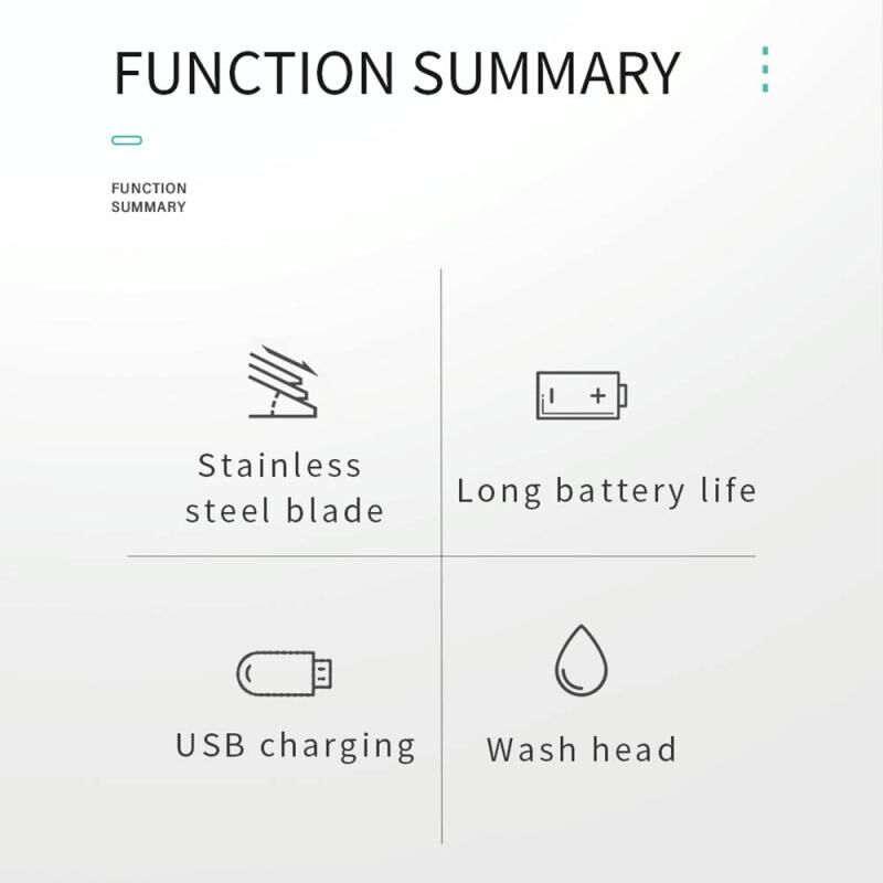 15. Accessories: USB charging cable x 1, limit comb x 3, blade cover x 1, cleaning brush x 1, user manual x 1