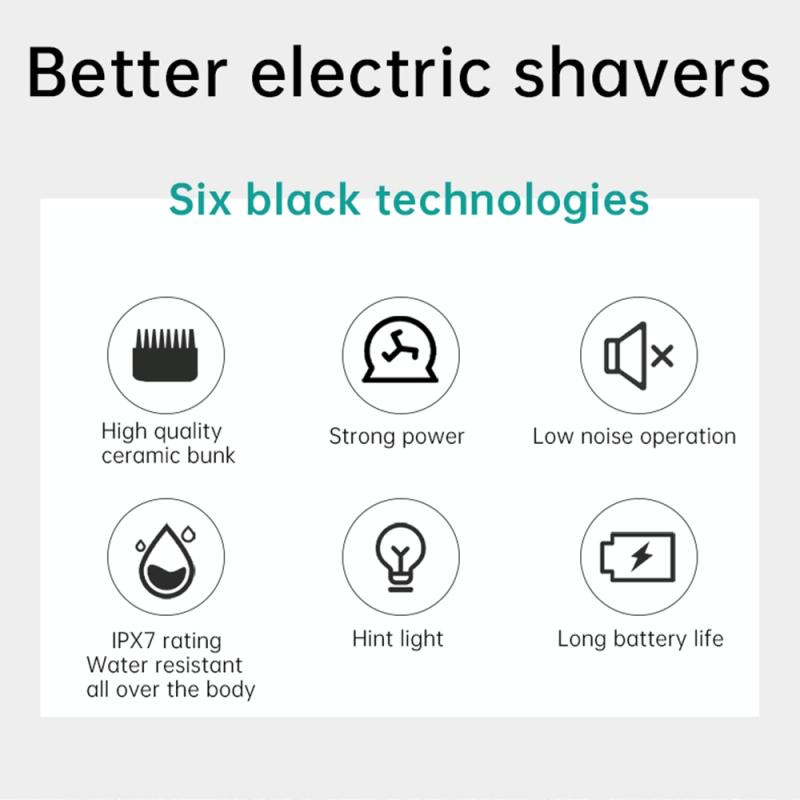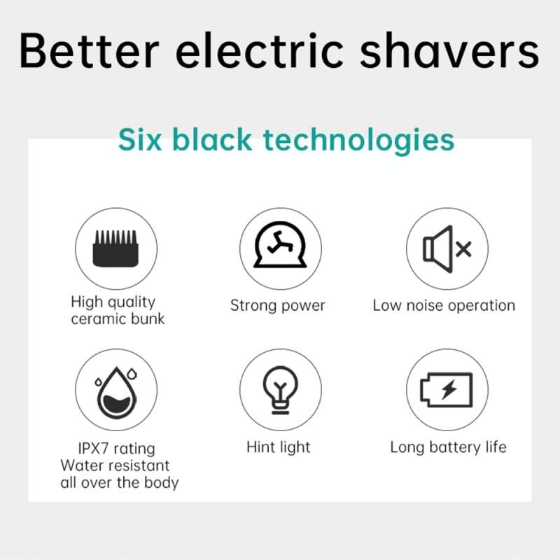 8. Accessories: guide comb, cleaning brush, USB charging cable, manual