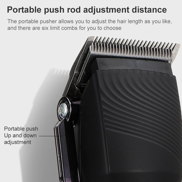 13. Accessories: USB charging cable x1, limit comb x6 (1.5/3/4.5/6/10/13), cleaning brush x1, English manual x1