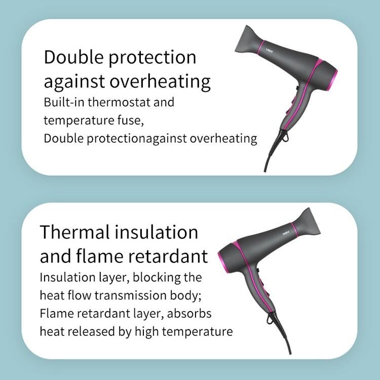 6. Στο εσωτερικό του στεγνωτήρα μαλλιών είναι εγκατεστημένο ένα έξυπνο σύστημα προστασίας ελέγχου θερμοκρασίας. Όταν η θερμοκρασία υπερβεί τη μέγιστη επιτρεπτή θερμοκρασία, η συσκευή υπερθέρμανσης θα σταματήσει αυτόματα τη λειτουργία της συσκευής, επιτρέποντάς σας να τη χρησιμοποιείτε με ασφάλεια