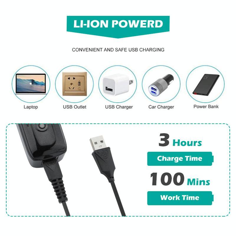 11. Accessories: USB charging cable x 1, limit comb x 4, base x 1, cleaning brush x 1, user manual x 1
