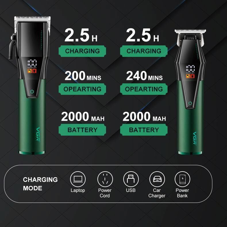 12. Accessories: USB charging cable x 1, limit comb x 8, cleaning brush x 1, user manual x 1