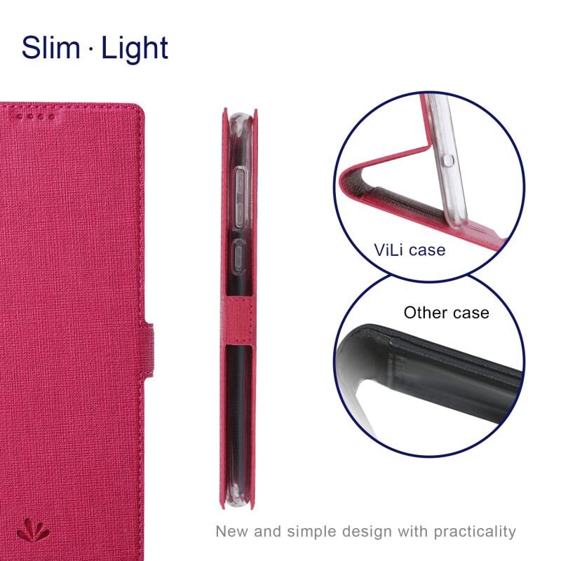 Θήκη ViLi Σειράς K ανθεκτική στις κρούσεις από TPU + Δερματίνη με Μαγνητικό Κούμπωμα, Οριζόντια, με Θήκες για Κάρτες & Πορτοφόλι & Στήριξη για Motorola Moto Edge 20 Lite (Μαύρο) (Ροζέ κόκκινο)