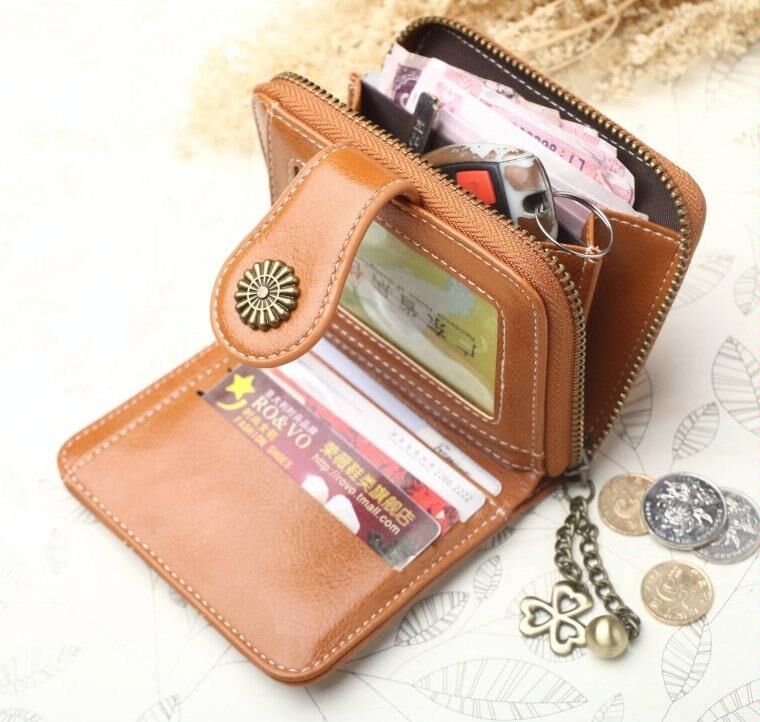 Vintage Button Phone Purses Women Wallets Female Purse Leather Brand Retro Ladies Long Zipper Woman Wallet Card Clutch(Short green)