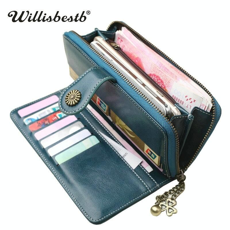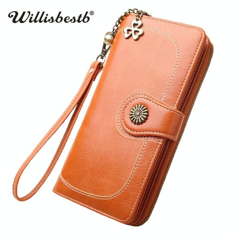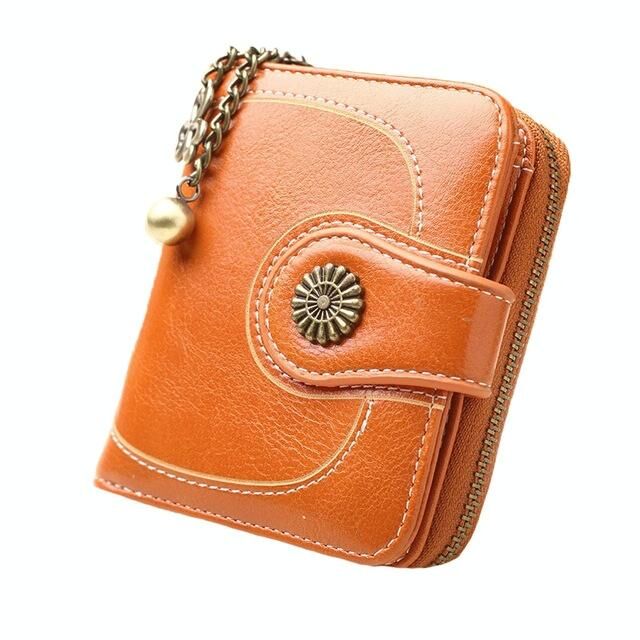 Vintage Button Phone Purses Women Wallets Female Purse Leather Brand Retro Ladies Long Zipper Woman Wallet Card Clutch(Short orange)
