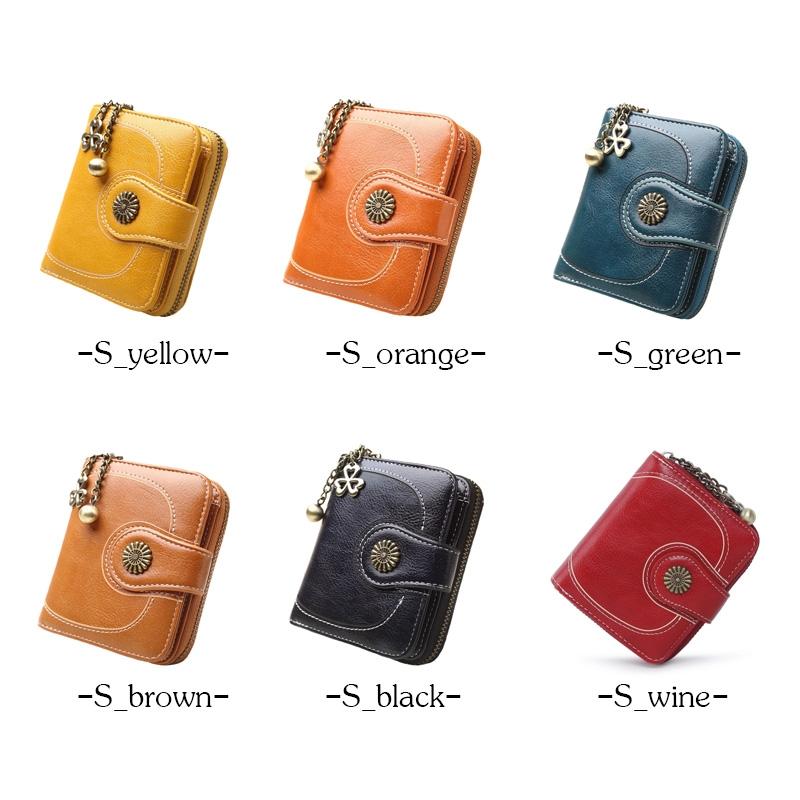 Ρετρό γυναικείο πορτοφόλι με κουμπί και μακρύ φερμουάρ από δέρμα (Short Κίτρινο)