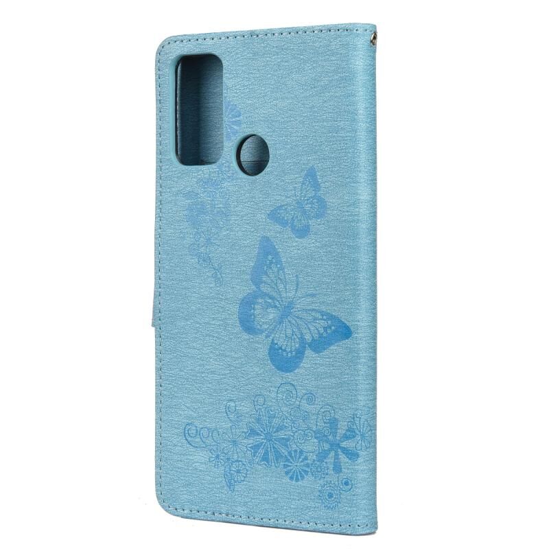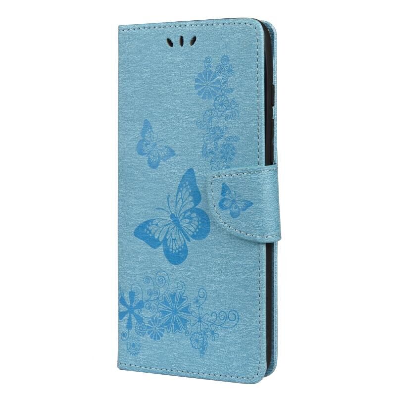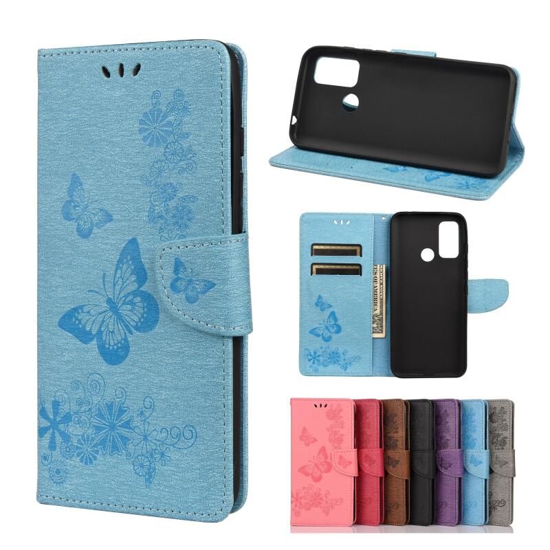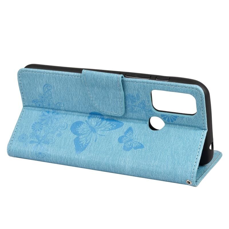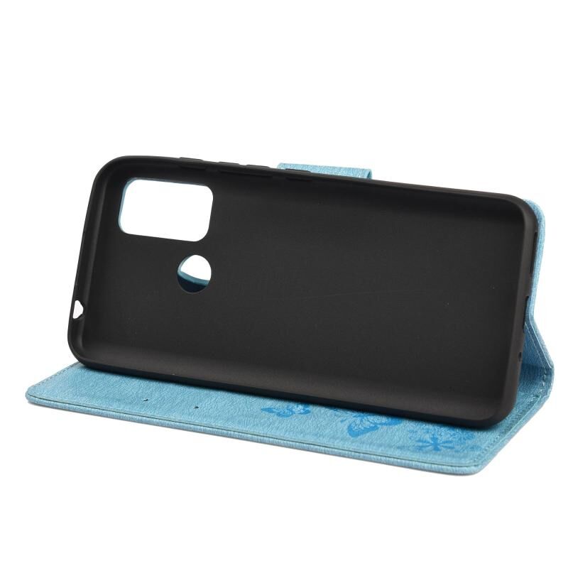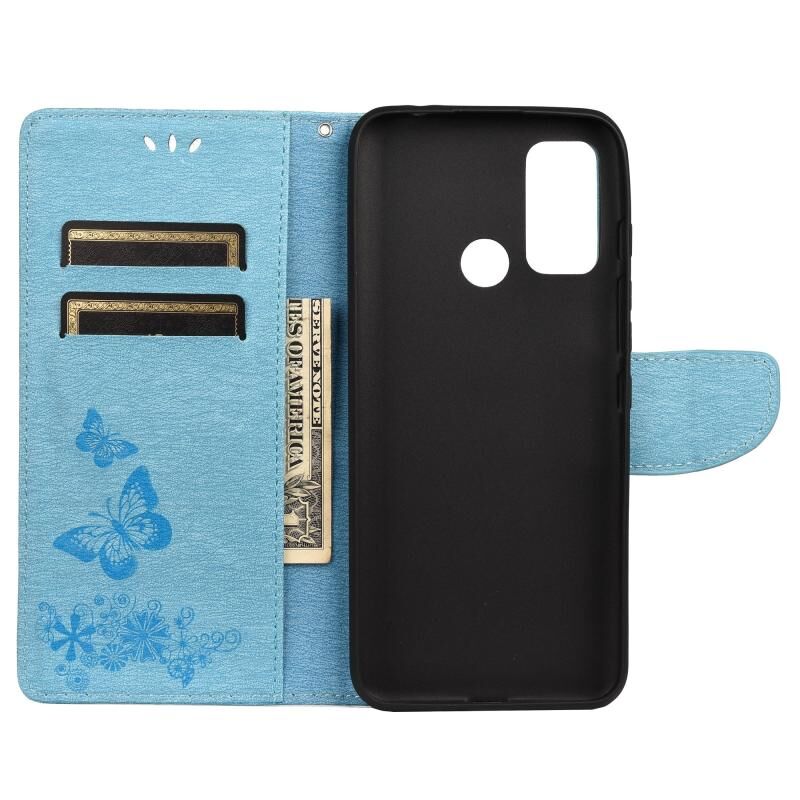 Θήκη δέρματος οριζόντιας αναδίπλωσης με ανάγλυφο floral σχέδιο πεταλούδας, θήκη για κάρτες, βάση & πορτοφόλι & λουρί για Wiko Power U30 (Μαύρο)