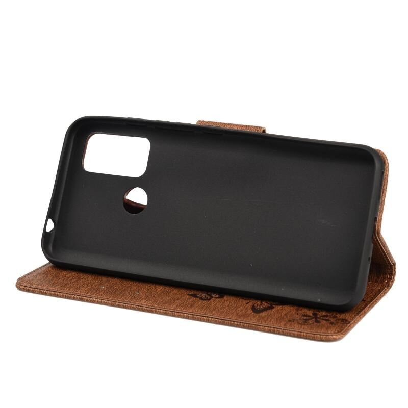 Θήκη δέρματος οριζόντιας αναδίπλωσης με ανάγλυφο floral σχέδιο πεταλούδας, θήκη για κάρτες, βάση & πορτοφόλι & λουρί για Wiko Power U30 (Μαύρο)