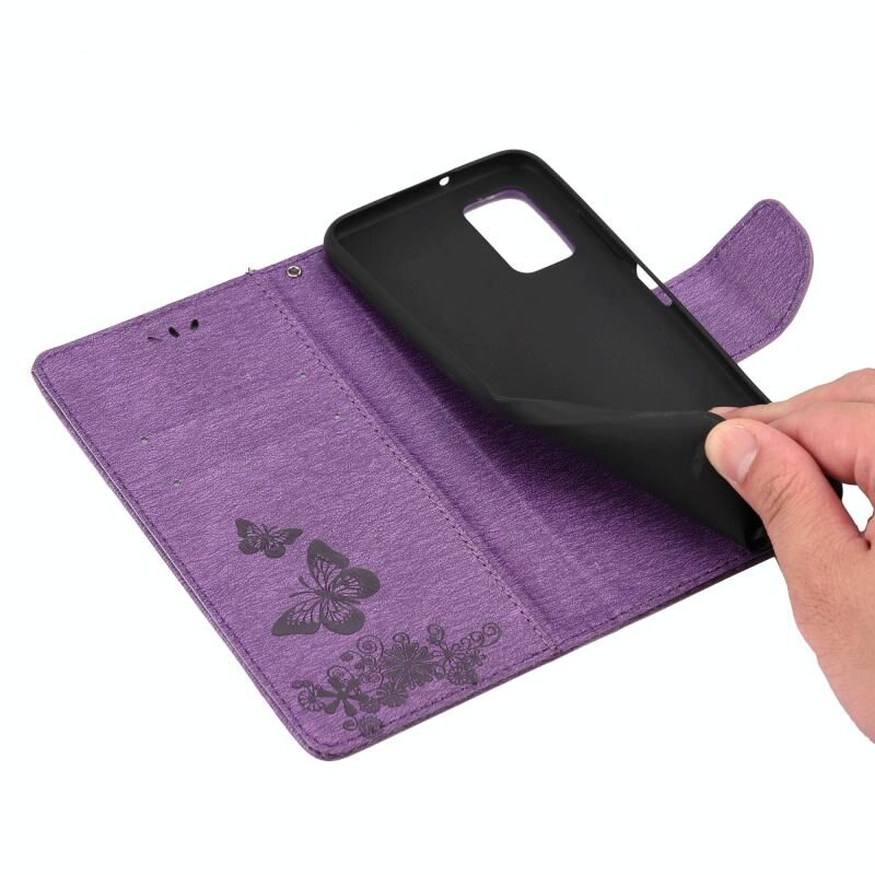 Vintage Embossed Floral Butterfly Pattern Horizontal Flip Leather Case with Card Slot & Holder & Wallet & Lanyard For Xiaomi Redmi 10(Grey)