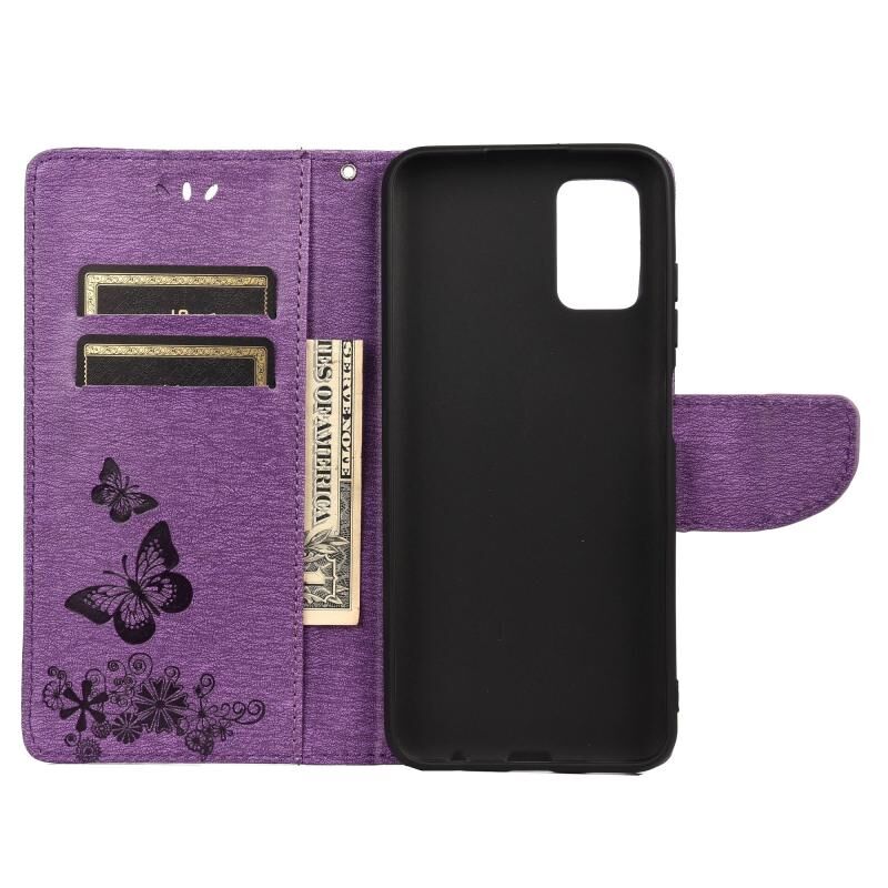 Vintage Embossed Floral Butterfly Pattern Horizontal Flip Leather Case with Card Slot & Holder & Wallet & Lanyard For Xiaomi Redmi 10(Purple)