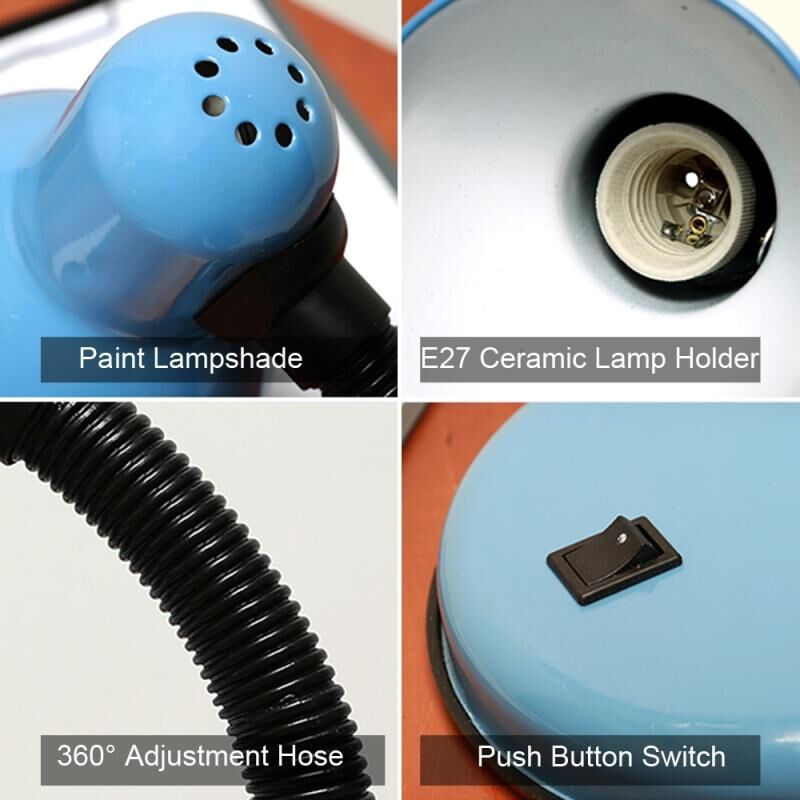 Vintage Iron LED Desk Lamp Push Button Switch Eye Protection Reading Led Light Table Lamps(Red)