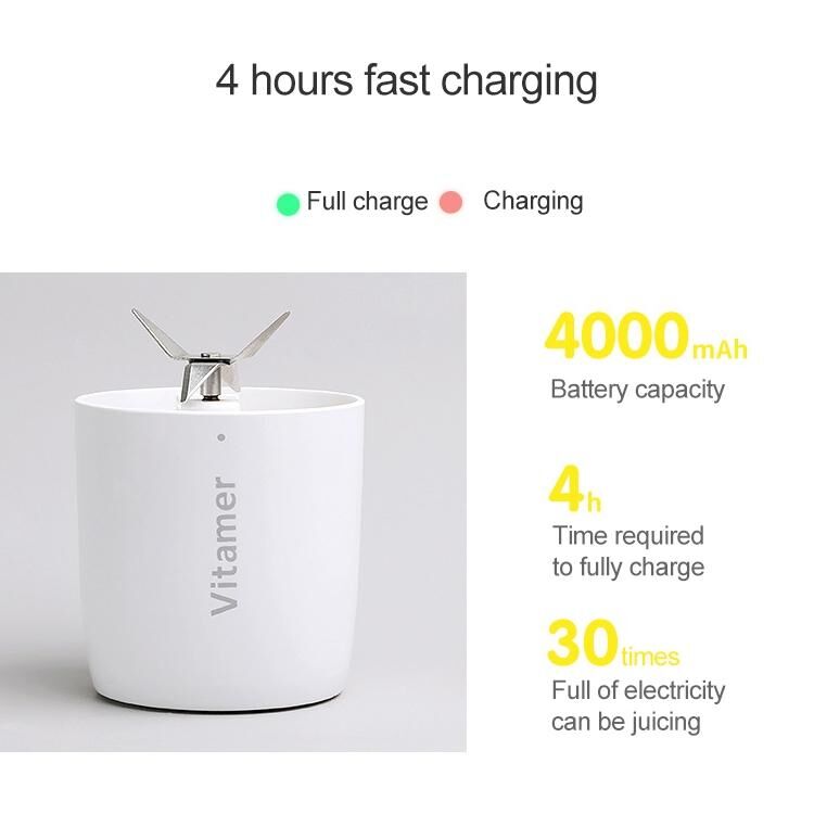 2. It is not allowed to squeeze juice while charging. Wait until the blue light is displayed before charging. Turn on the juicer again. This will greatly extend battery life
