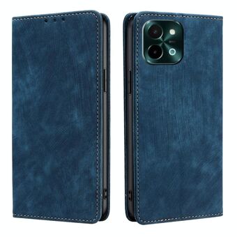 For vivo Y28 4G RFID Anti-theft Brush Magnetic Leather Phone Case(Blue)