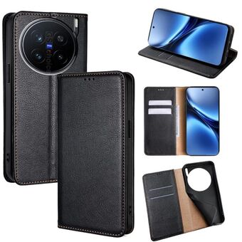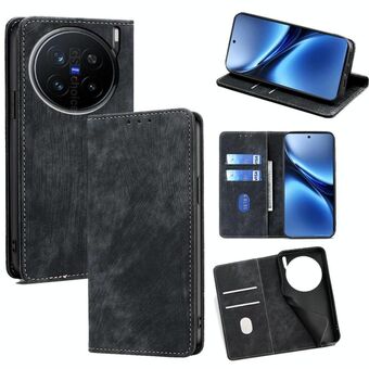 For vivo X200 Pro 5G RFID Anti-theft Brush Magnetic Leather Phone Case(Black)