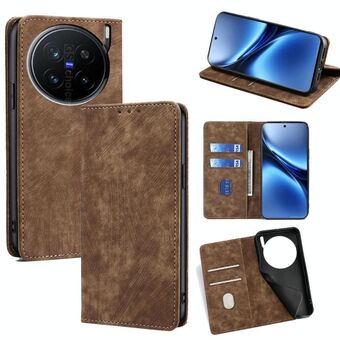 For vivo X200 Pro 5G RFID Anti-theft Brush Magnetic Leather Phone Case(Brown)