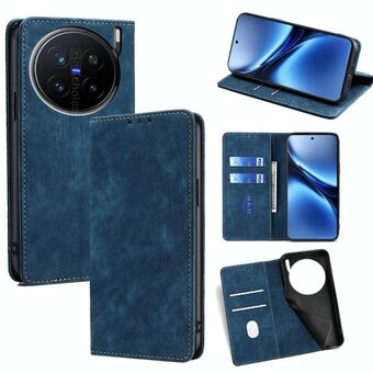For vivo X200 Pro 5G RFID Anti-theft Brush Magnetic Leather Phone Case(Blue)