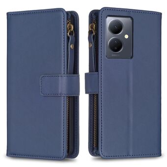 For vivo Y78 5G 9 Card Slots Zipper Wallet Leather Flip Phone Case(Blue)