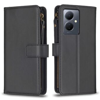 For vivo Y78 5G 9 Card Slots Zipper Wallet Leather Flip Phone Case(Black)