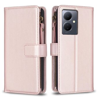 For vivo Y78 5G 9 Card Slots Zipper Wallet Leather Flip Phone Case(Rose Gold)