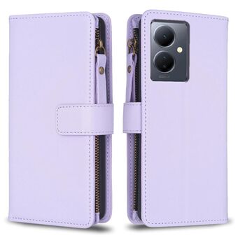 For vivo Y78 5G 9 Card Slots Zipper Wallet Leather Flip Phone Case(Light Purple)