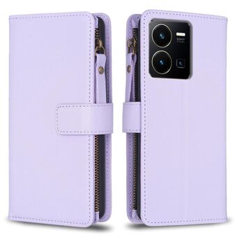 For vivo Y35 4G / Y22s 9 Card Slots Zipper Wallet Leather Flip Phone Case(Light Purple)