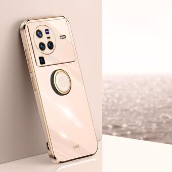 For vivo X80 Pro XINLI Straight Edge 6D Electroplate TPU Phone Case with Ring Holder(Pink)