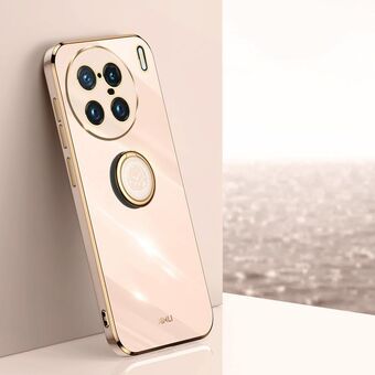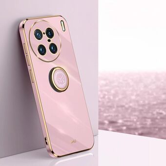 For vivo X90 Pro 5G XINLI Straight Edge 6D Electroplate TPU Phone Case with Ring Holder(Pink) (XINLI)