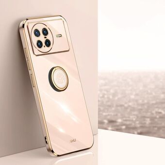 For vivo X80 Pro XINLI Straight Edge 6D Electroplate TPU Phone Case with Ring Holder(White)