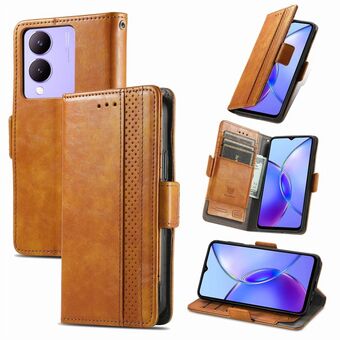 For vivo Y17s 4G CaseNeo Splicing Dual Magnetic Buckle Leather Phone Case(Khaki)