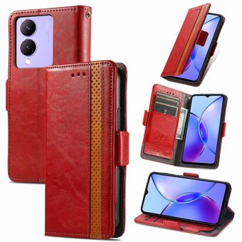 For vivo Y17s 4G CaseNeo Splicing Dual Magnetic Buckle Leather Phone Case(Red)