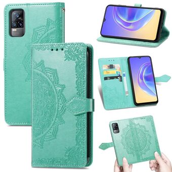 For vivo V21e 4G Mandala Flower Embossed Horizontal Flip Leather Case with Holder & Three Card Slots & Wallet & Lanyard(Green)
