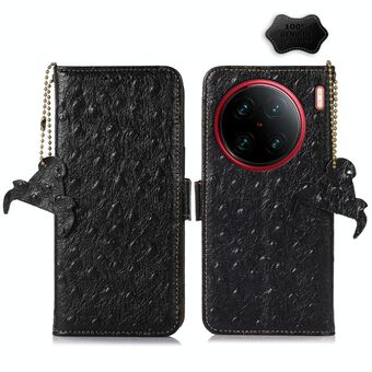 For vivo X90 Pro+ Ostrich Pattern Genuine Leather RFID Phone Case(Black)