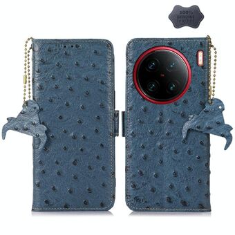 For vivo X90 Pro+ Ostrich Pattern Genuine Leather RFID Phone Case(Blue)