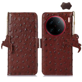 For vivo X90 Pro+ Ostrich Pattern Genuine Leather RFID Phone Case(Coffee)