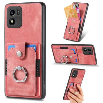 For vivo Y01 Retro Skin-feel Ring Multi-card Wallet Phone Case(Pink)