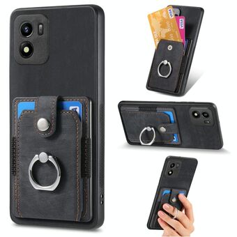 For vivo Y01 Retro Skin-feel Ring Multi-card Wallet Phone Case(Black)