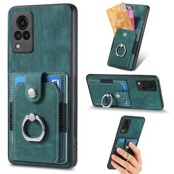 For vivo V21 5G Retro Skin-feel Ring Multi-card Wallet Phone Case(Green)
