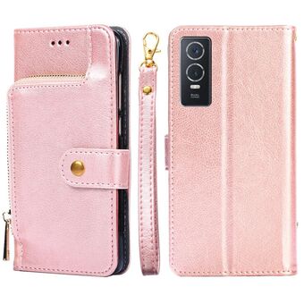 For vivo Y76s China/Y74s Zipper Bag Leather Phone Case(Rose Gold)