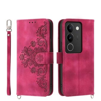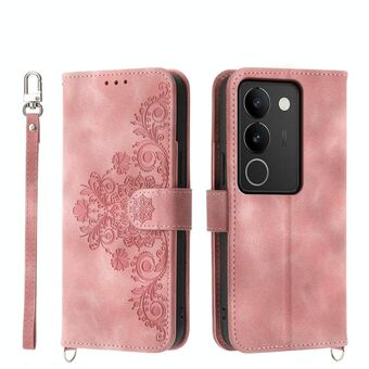 For vivo S17 Skin Feel Flowers Embossed Wallet Leather Phone Case(Pink)