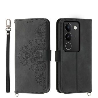 For vivo S17 Skin Feel Flowers Embossed Wallet Leather Phone Case(Black)