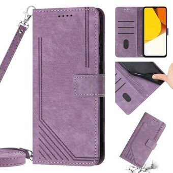 For vivo V25 / V25e / X80 Lite Skin Feel Stripe Pattern Leather Phone Case with Lanyard(Purple)