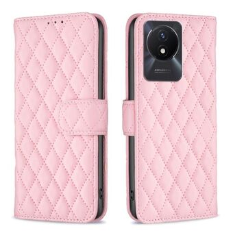 For vivo Y02 4G Diamond Lattice Wallet Leather Flip Phone Case(Pink)