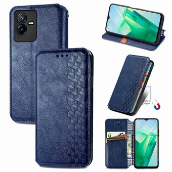 For vivo T2X 5G Cubic Grid Pressed Magnetic Leather Phone Case(Blue)