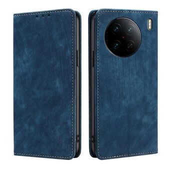 For vivo X90 Pro 5G RFID Anti-theft Brush Magnetic Leather Phone Case(Blue)