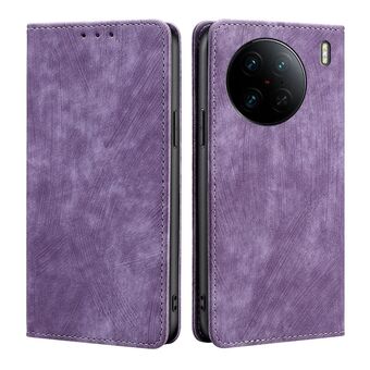 For vivo X90 Pro 5G RFID Anti-theft Brush Magnetic Leather Phone Case(Purple)